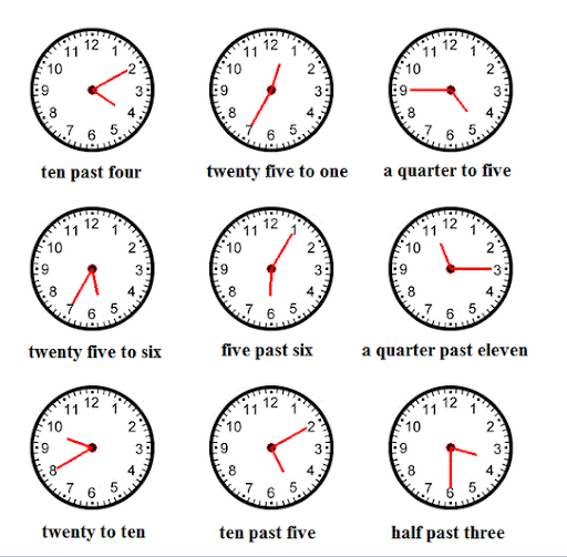 Cách nói giờ kém trong Tiếng Anh (<15 phút)