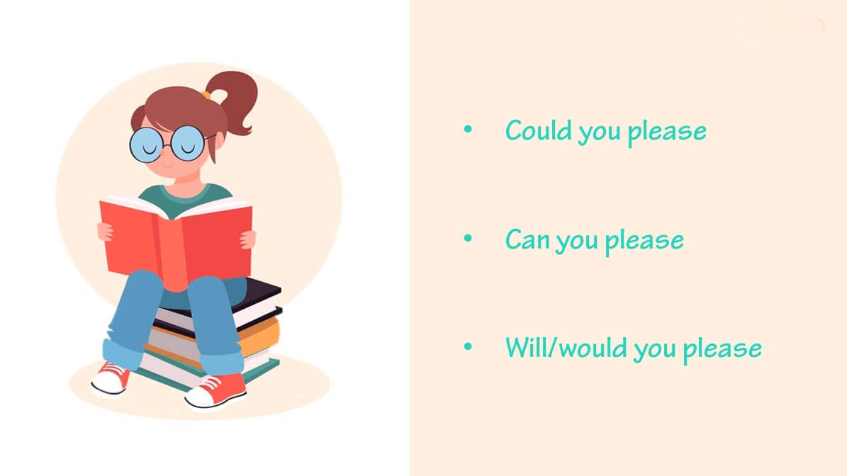 Chú ý: Bởi tính kém lịch sự, vì vậy bạn hãy sử dụng dạng cấu trúc will/ would thay thế cho could you please đối với các ngữ cảnh thân mật hoặc suồng sã, cũng như phải thật sự thân thiết.