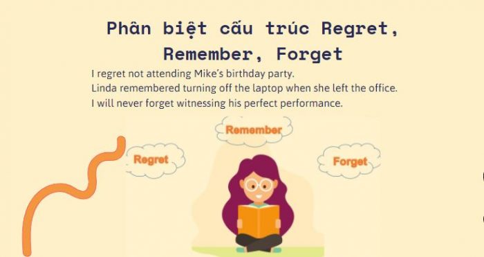 Regret remember và forget đều dùng để diễn tả hành động xảy ra trước