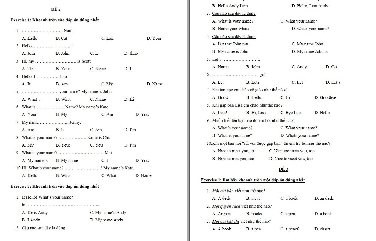 Exercise 1: Khoanh tròn vào đáp án đúng nhất