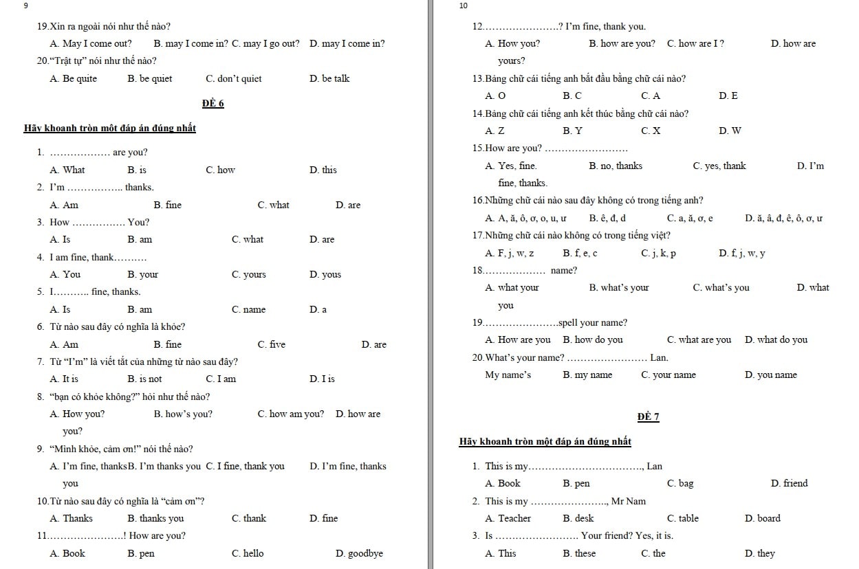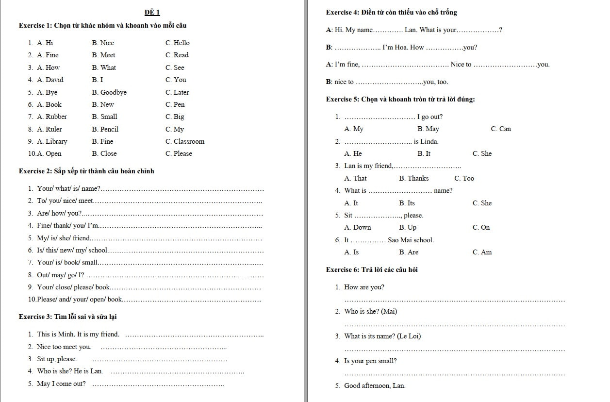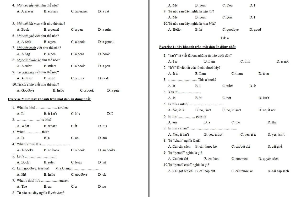 30+ ĐỀ ÔN HÈ MÔN TIẾNG ANH LỚP 3 LÊN LỚP 4 MỚI NHẤT (Phần 1)