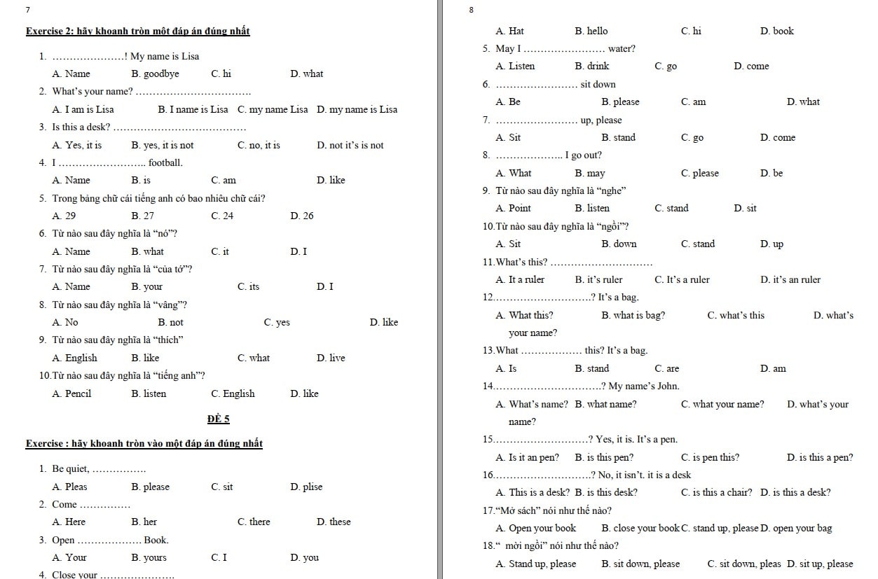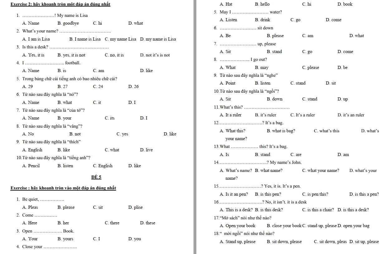 Exercise 1: Em hãy khoanh tròn một đáp án đúng nhất