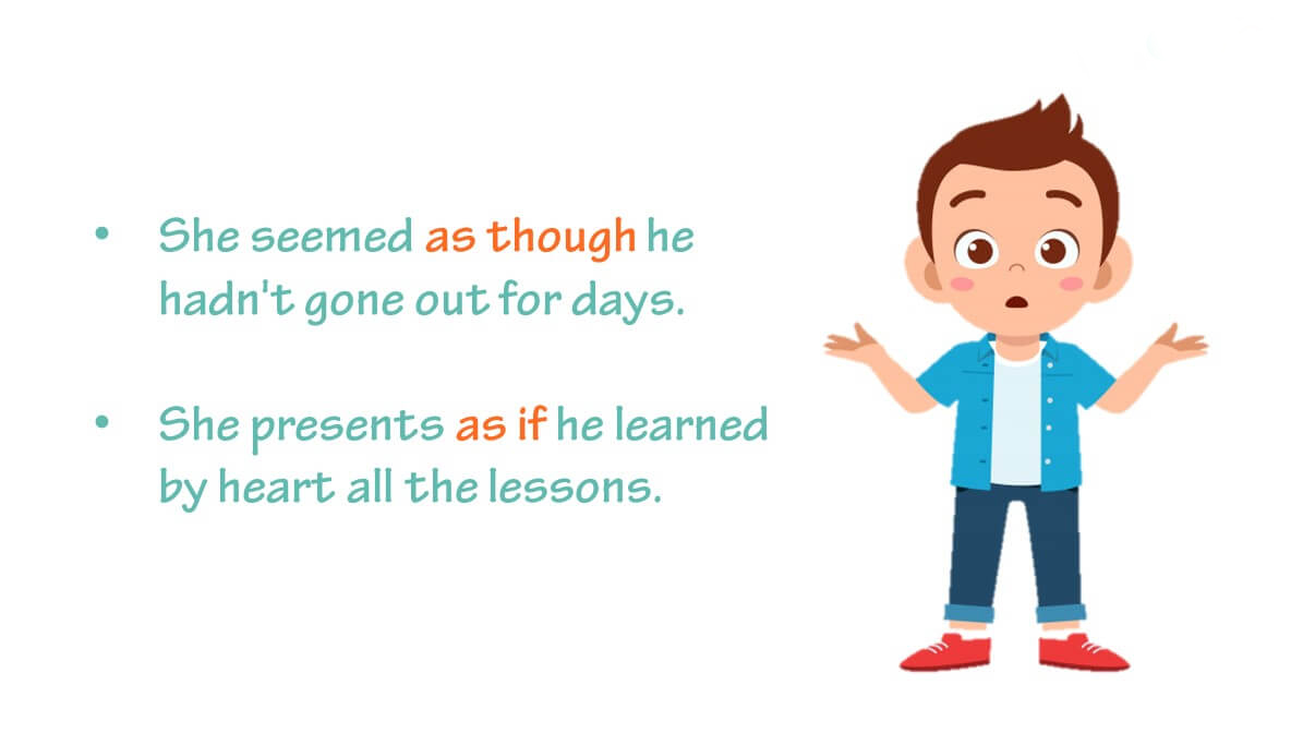 - He looked as if/ as though he know the answer. / (Anh ấy nhìn có vẻ như anh ấy biết đáp án vậy.)