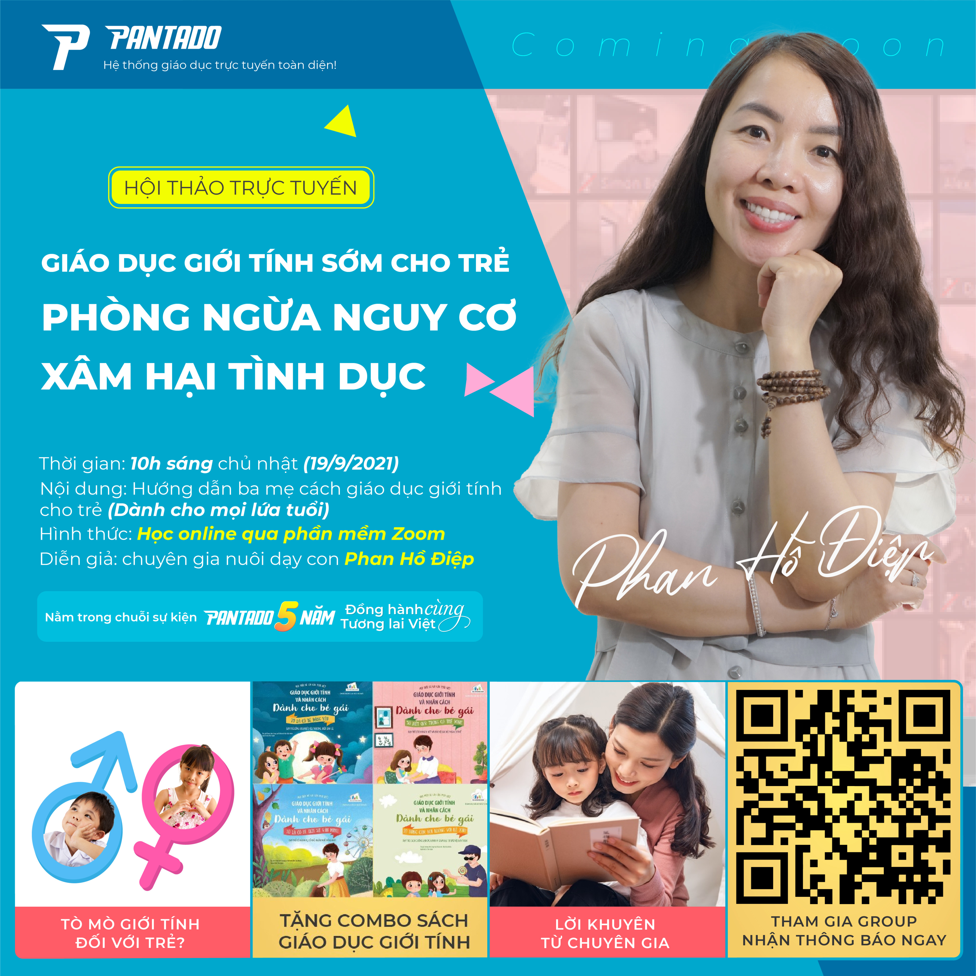 Điều quan trọng là làm thế nào để ba mẹ trang bị cho con về những kiến thức giáo dục giới tính cho trẻ. Hiểu được những băn khoăn này, Pantado xin hân hạnh thông báo về việc tổ chức Hội thảo “Giáo dục giới tính sớm cho trẻ – Phòng ngừa nguy cơ xâm hại tình dục” với diễn giả là chị Phan Hồ Điệp – chuyên gia nuôi dạy con đã rất quen thuộc với bậc làm cha mẹ chúng ta.