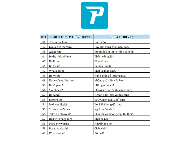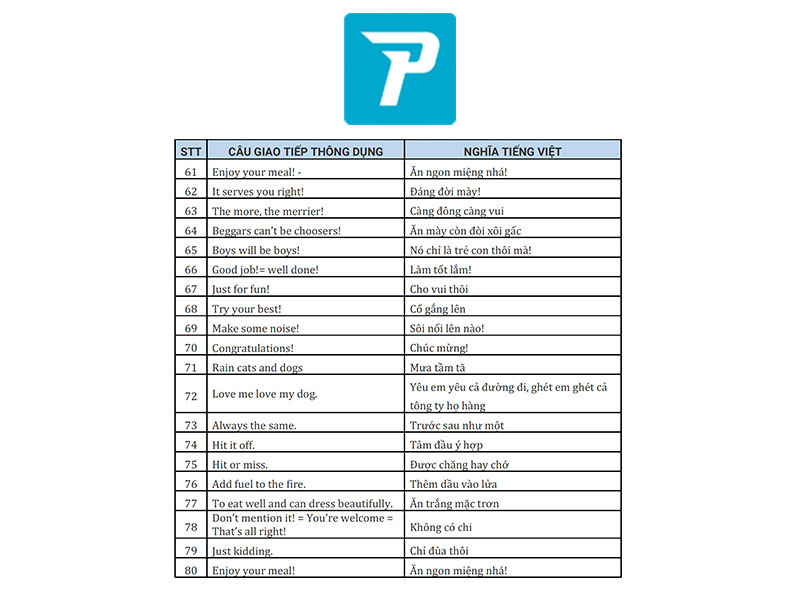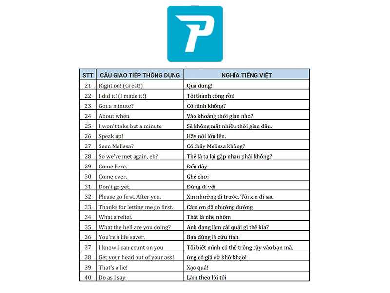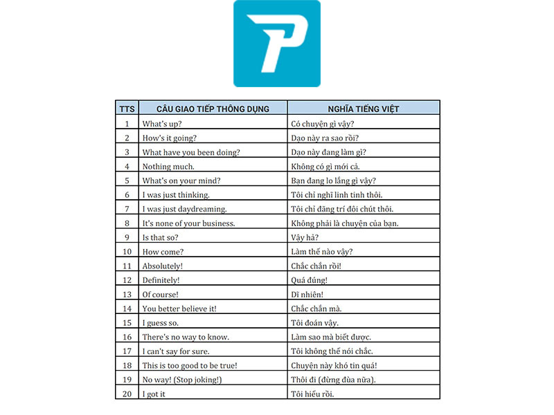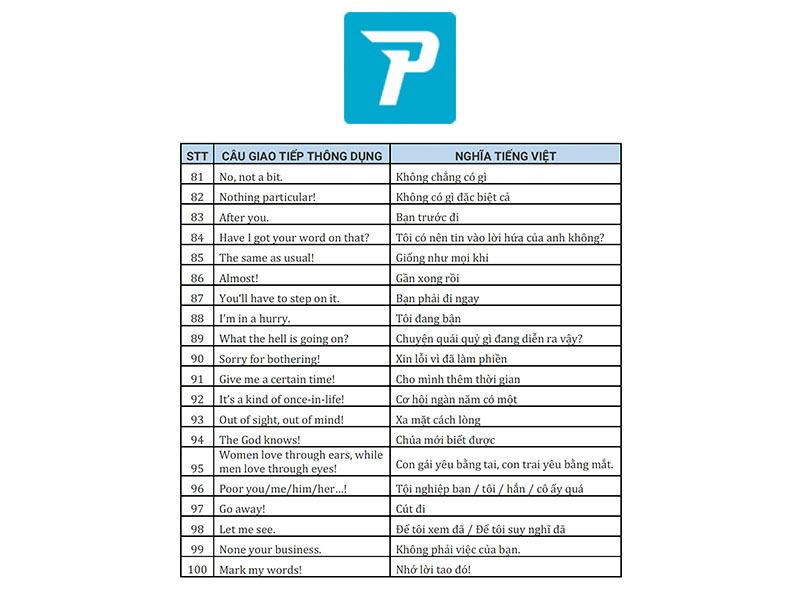 Dưới đây là 100 câu đàm thoại tiếng Anh thông dụng, từ cấp độ đến phức tạp, trong nhiều ngữ cảnh. Bạn có thể Hãy cùng tham khảo và rất hữu ích để áp dụng đấy: