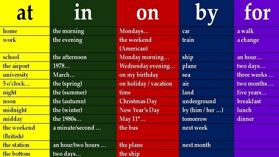 40 giới từ thông dụng trong tiếng Anh