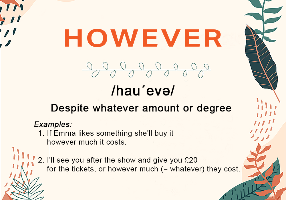 However /haʊˈevə(r)/ được hiểu là “tuy nhiên”, “thế nhưng”, “nhưng mà”, “cho dù”.