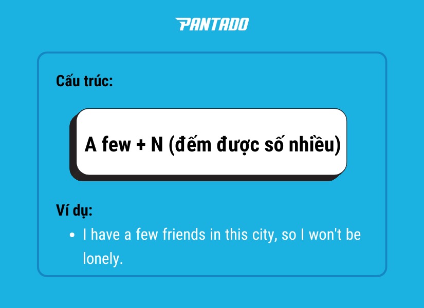 “A few” đi với danh từ đếm được số nhiều, mang nghĩa là một ít nhưng đủ dùng, mang sắc thái tích cực.