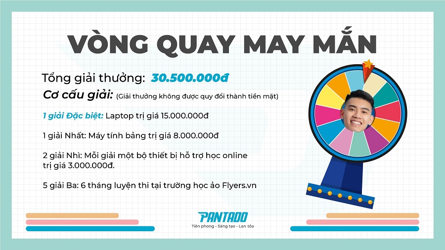 Hưởng ứng tháng cuối năm, khép lại một năm 2021 đầy nỗ lực, cố gắng với những dấu ấn đáng nhớ. Chương trình bốc thăm nhận những phần quà vô cùng thú vị của Pantado trong tháng cuối năm hứa hẹn sẽ mang đến nhiều điều vô cùng hấp dẫn cho các bậc phụ huynh và các con thân yêu với mục đích giúp khách hàng – những người anh nuôi của Pantado nhận được thêm những giá trị vật lý và cả những món quà vô cùng ý nghĩa để giúp con thực hiện ước mơ bay cao, bay xa với hành trình chinh phục tri thức năm 2022 toàn thắng.