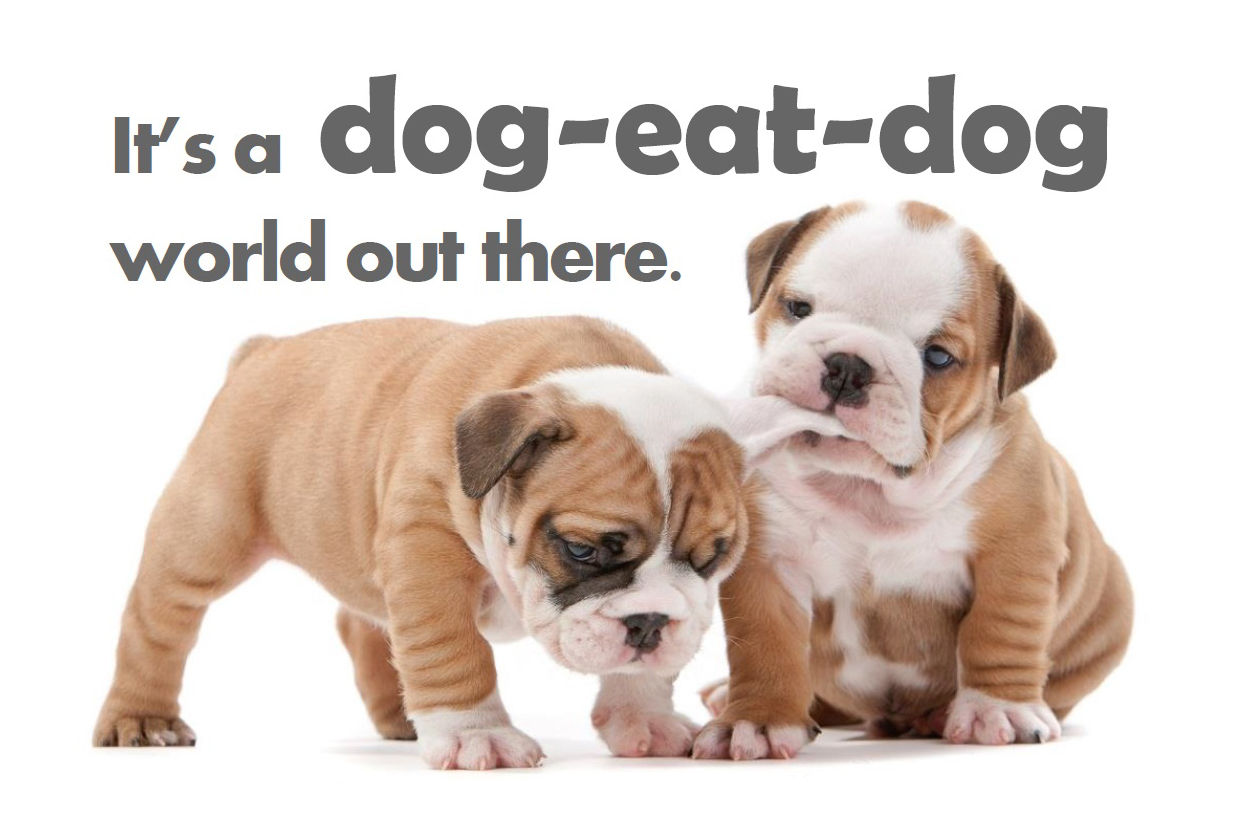 Khi sử dụng thành ngữ “dog eat dog”, người nói đang muốn thể hiện một sự cạnh tranh rất gay gắt, đến mức có thể làm tất cả mọi thứ để dẫn đầu, thậm chí có thể làm tổn thương người khác. “dog eat dog” được sử dụng để mô tả những tình huống cạnh tranh trong trường học, công ty hoặc một ngành kinh tế.