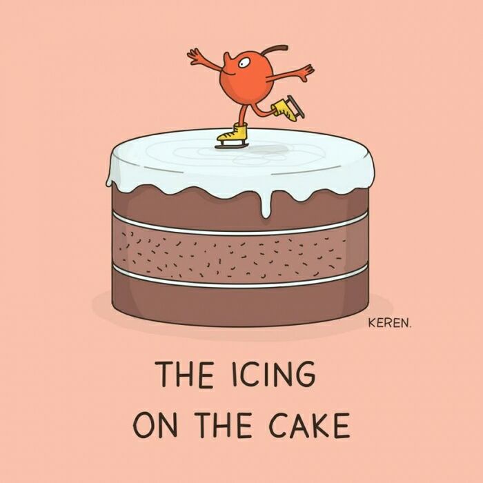 Nghĩa đen của "the icing on the cake" là lớp kem phủ trên mặt bánh. Thành ngữ này được dùng với ý nghĩa là một điều may mắn đến sau một chuyện tốt lành nào đó.