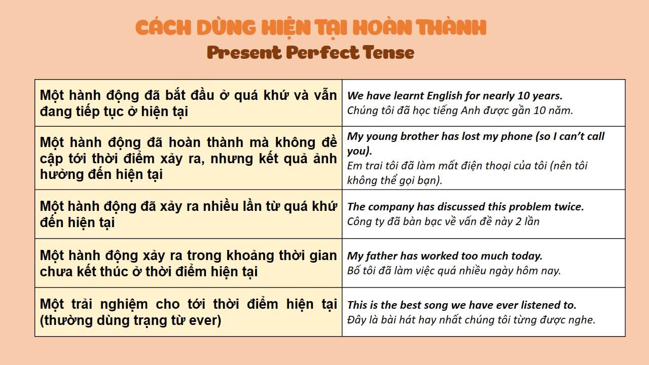 CÁCH SỬ DỤNG THÌ HIỆN TẠI HOÀN THÀNH