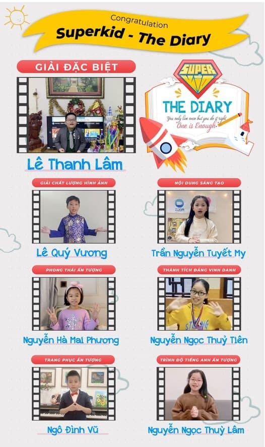 Một lần nữa, BTC xin chúc mừng 7 thí sinh đã đạt giải của cuộc thi Superkid – The Diary. Ngoài việc được trở thành các Superkid, các bạn đều đã có dịp nhìn lại 1 năm 2021 để sau này tự hào về bản thân về một năm biến động và khó khăn.