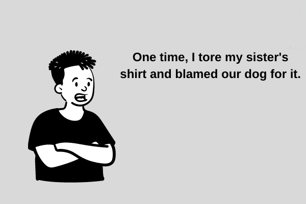 • One time, I tore my sister’s shirt and blamed our dog for it.
