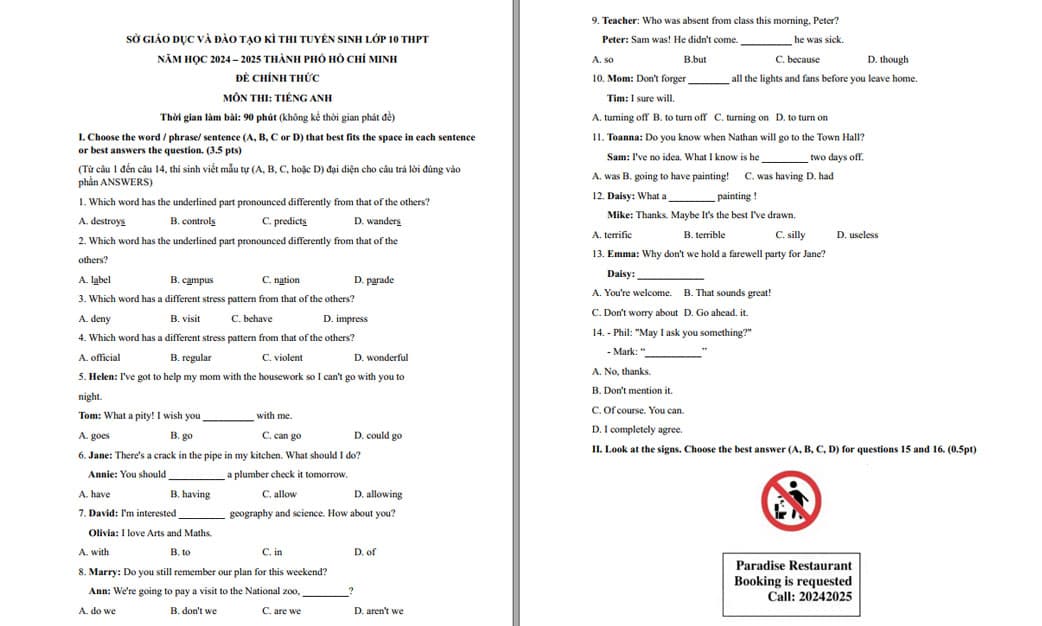 Pantado đã tổng hợp đáp án đề thi Tiếng Anh vào lớp 10 tại TP.HCM năm 2024. Xem chi tiết bài viết để đối chiếu đáp án ngay nhé.