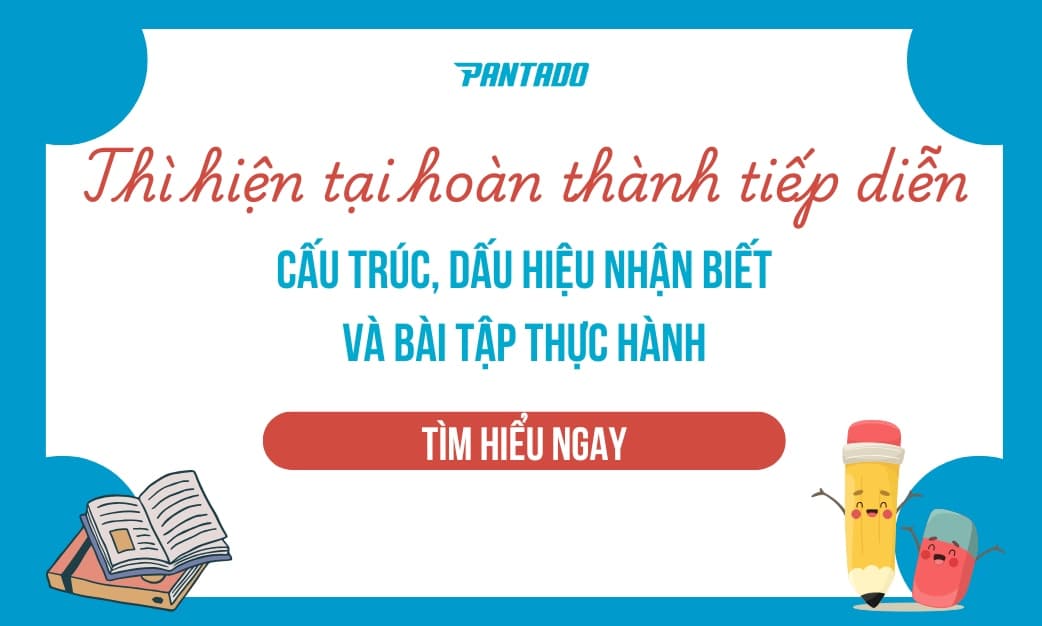 Thì hiện tại hoàn thành tiếp diễn là một trong những thì quan trọng trong ngữ pháp tiếng Anh. Cùng Pantado tìm hiểu về khái niệm, công thức, cách dùng, dấu hiệu nhận biết và bài tập thực hành kèm đáp án để nắm vững điểm ngữ pháp này.